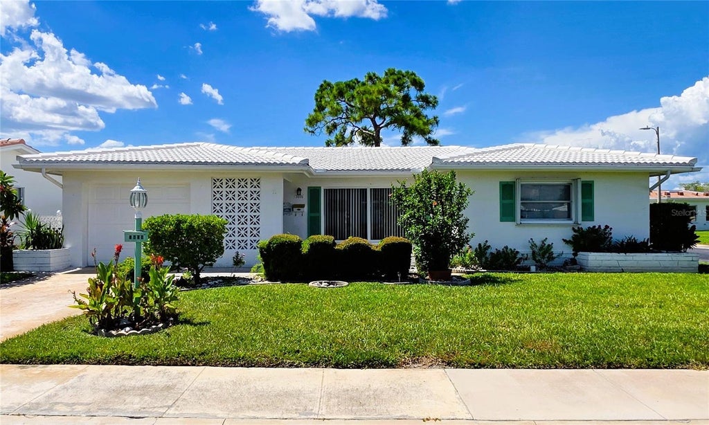 Welcome to this amazing 2-bedroom, 2-bath home, perfectly situated in the highly desirable 55+ community of Mainlands of Tamarac by the Gulf. Offering over 1,600 sq ft of living space on a corner lot, an oversized 1-car garage, this residence is ready for your personal touches to create your ideal sanctuary. Enjoy spacious bedrooms with ample closet space, and peace of mind with a newer AC (2022), tile roof (2017), flat roof (2022) & hurricane shutters. Note this home did NOT FLOOD! This isn't just a home; it's a lifestyle! Surrounded by a lush golf course, the community boasts 7 different clubhouses brimming with activities. Unit 4 clubhouse is just a short walk away, featuring a large heated pool and shuffleboard – perfect for leisurely days. Experience true worry-free living with an HOA that covers roof replacement & repair, cable, internet, water, sewer, garbage, irrigation, lawn maintenance, and exterior paint. Centrally located in beautiful Pinellas, you're just a short drive to both Tampa and St. Pete Airports, and a mere 10-12 miles from the stunning sandy beaches. Enjoy an abundance of nearby restaurants and shopping options. Whether you're looking to retire in comfort or find your perfect second home, this property is a must-see. Book your private tour today and start living the Florida dream!